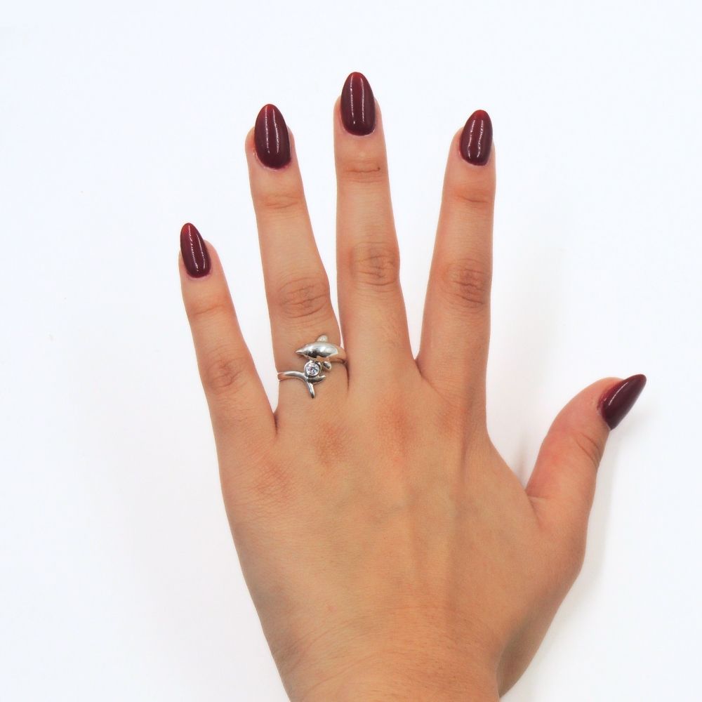 El Anillo “Delphis” es una joya con simbolismo marino que representa la libertad, la inteligencia y la protección del océano. Su diseño tridimensional muestra un elegante delfín de plata abrazando el dedo, con un circón que evoca la profundidad del mar. Elaborado en plata fina 950, es un amuleto de suerte y el regalo perfecto para quienes aman la fauna marina y las joyas con significado.