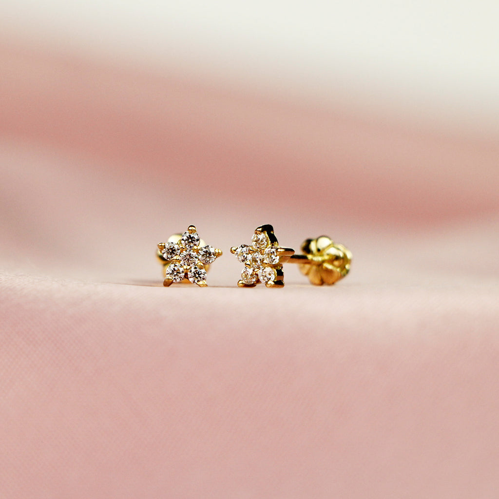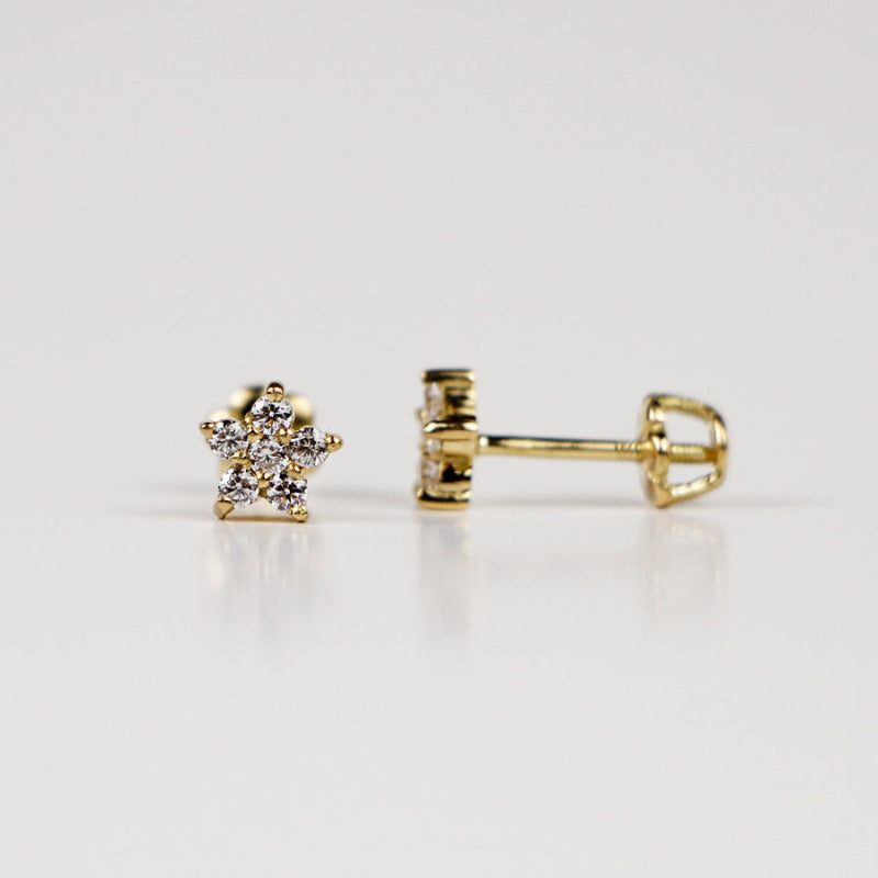 El centro con moissanita de 0.12 Ct. (o circón a elección) junto a las 10 moissanitas que lo rodean, crea un brillo armonioso y sofisticado. Además, su seguro tipo rosca garantiza que permanezcan firmes en su lugar, ofreciendo comodidad, tranquilidad y estilo duradero.
