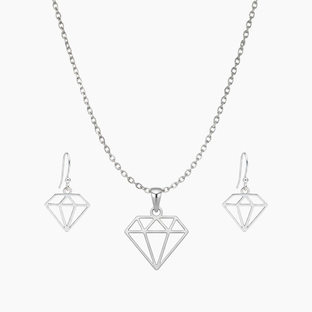 El Set “Diamantina”, compuesto por un collar y aretes en perfecta armonía, simboliza perfección, fuerza inquebrantable y claridad de propósito. Su contorno geométrico calado, inspirado en un diamante talla brillante, evoca resiliencia y valor interior, mientras su diseño moderno y atemporal proyecta un lujo sutil. Este conjunto se convierte en un amuleto que inspira confianza, brillo personal y es una excelente opción de regalo para celebrar momentos especiales.