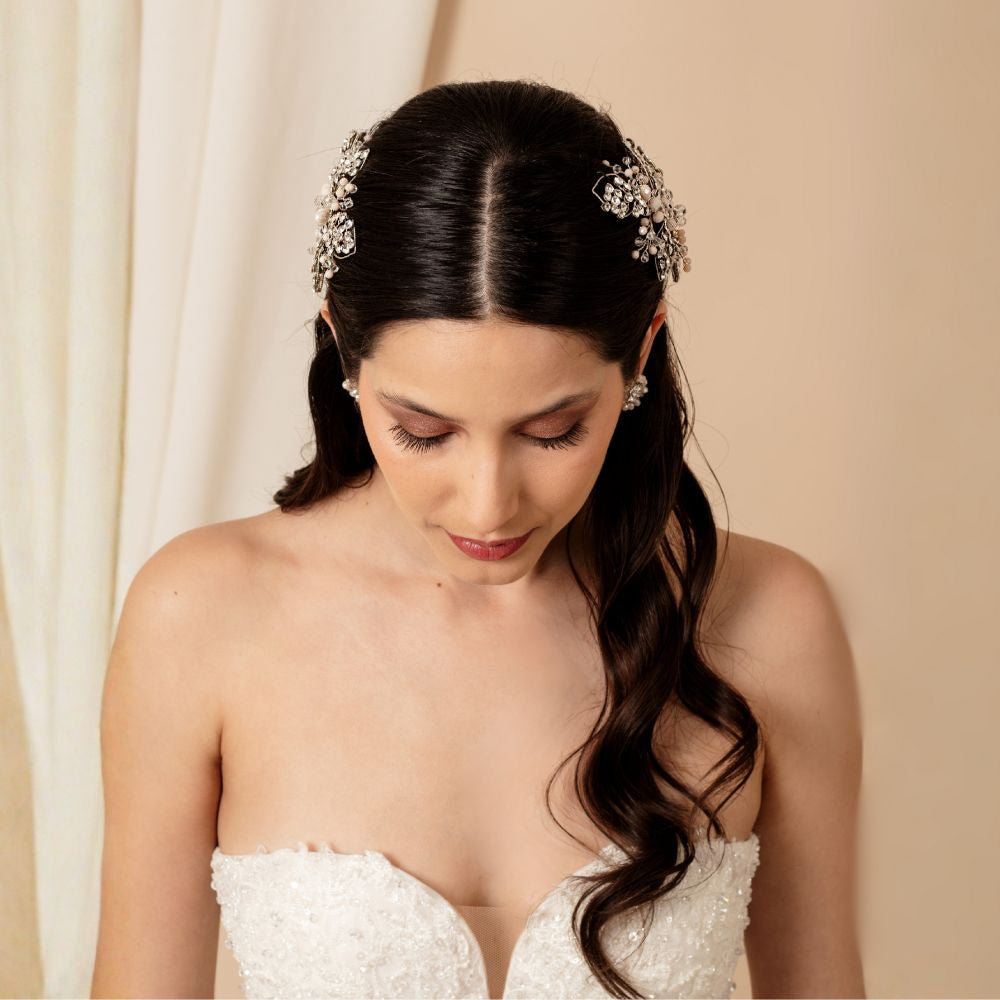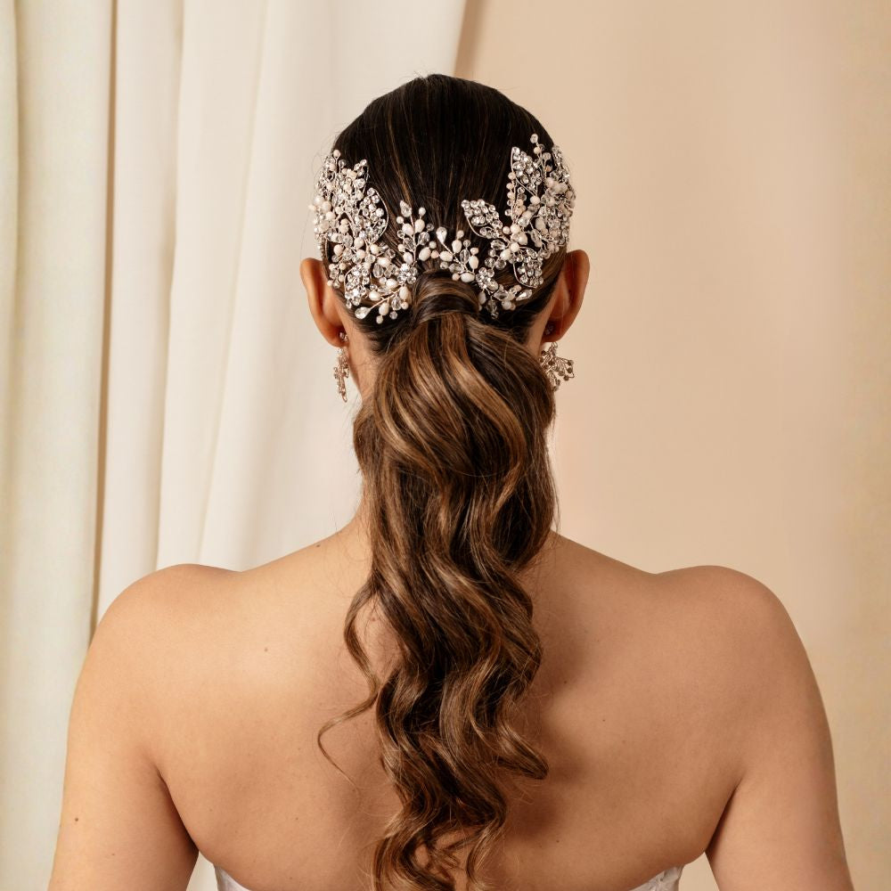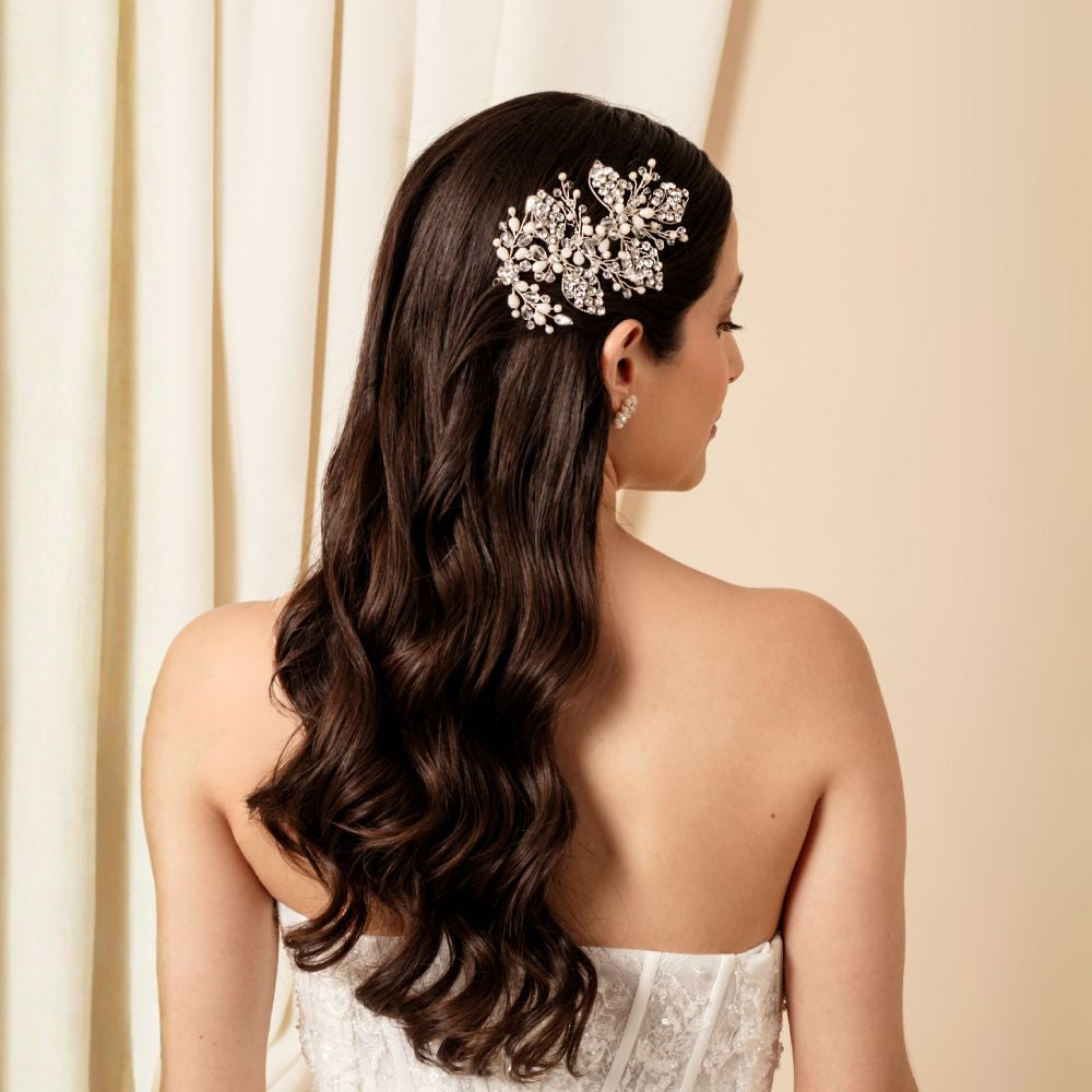 Su diseño floral y ramificado proyecta una luminosidad natural que evoca esperanza y romanticismo. Ideal para bodas de día o de tarde, realza la elegancia de la novia con un brillo delicado y atemporal. Además, con un diseño versátil es ideal para cualquier tipo de peinado