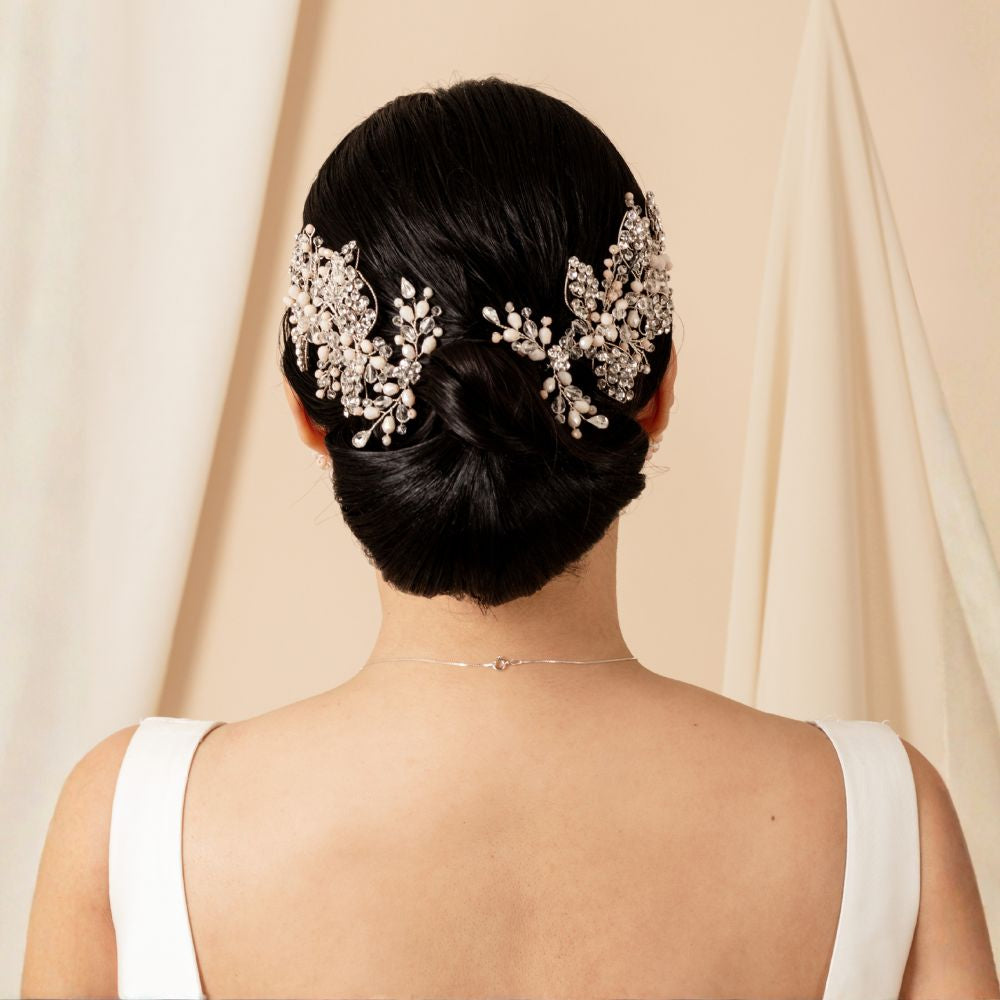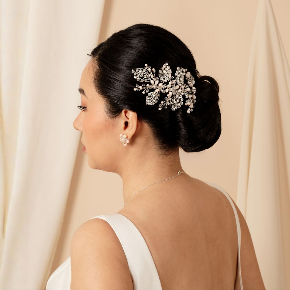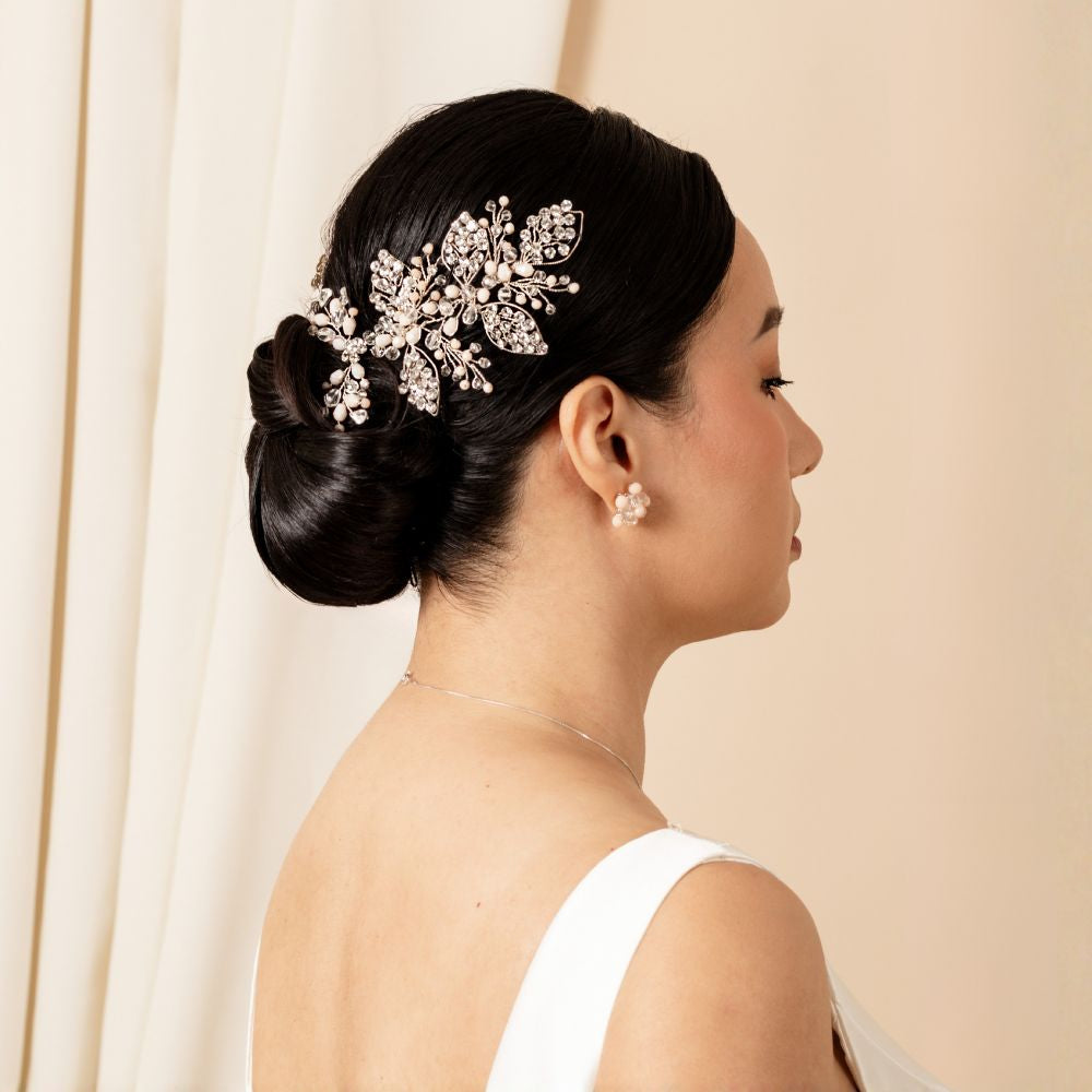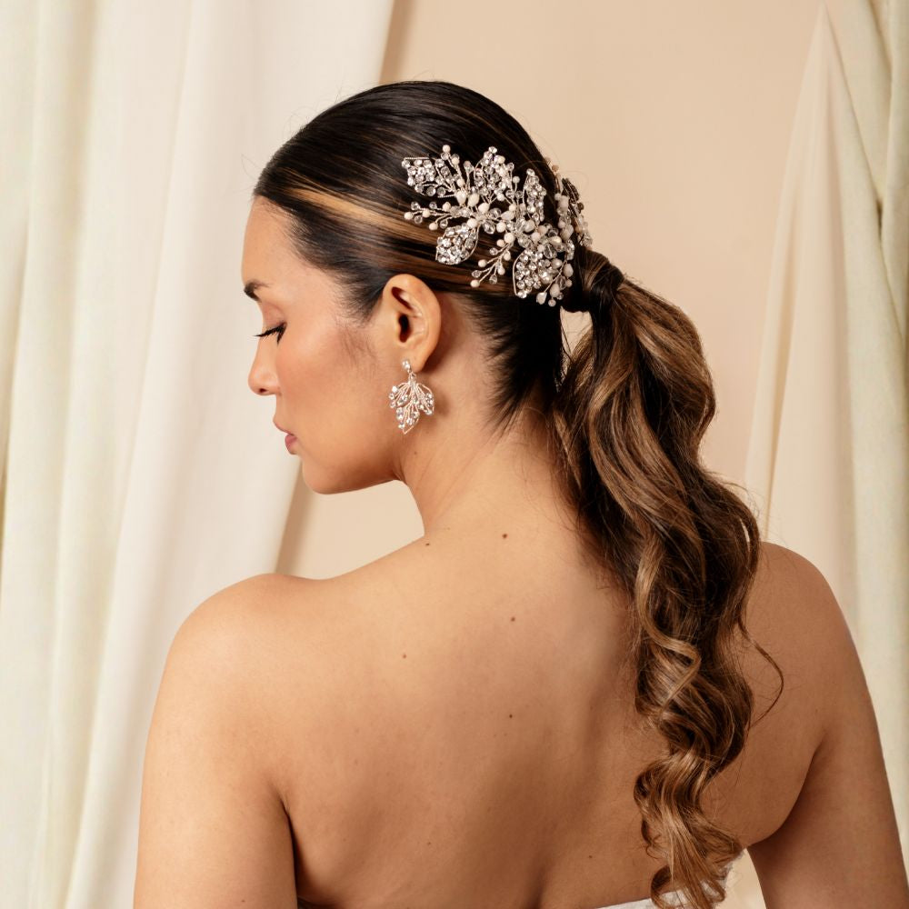 Su diseño floral y ramificado proyecta una luminosidad natural que evoca esperanza y romanticismo. Ideal para bodas de día o de tarde, realza la elegancia de la novia con un brillo delicado y atemporal. Además, con un diseño versátil es ideal para cualquier tipo de peinado
