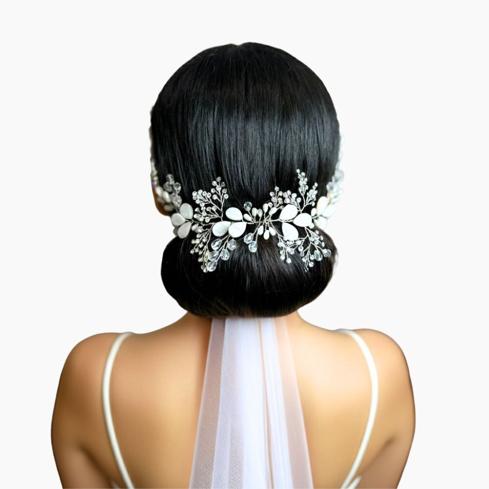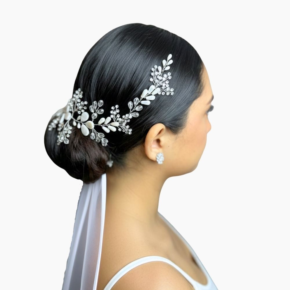 La Tiara Nupcial Vesta, inspirada en la diosa del hogar y la familia, representa el calor del amor que se construye día a día. Elaborada delicadamente en plata peruana 950 con finos hilos de plata, cristales checos, múranos y nácar, su diseño delicado y armónico evoca protección, unión y equilibrio. Además, los múranos y cristales pueden personalizarse en el color favorito de la novia, haciendo de cada Tiara Vesta una creación única y profundamente personal.