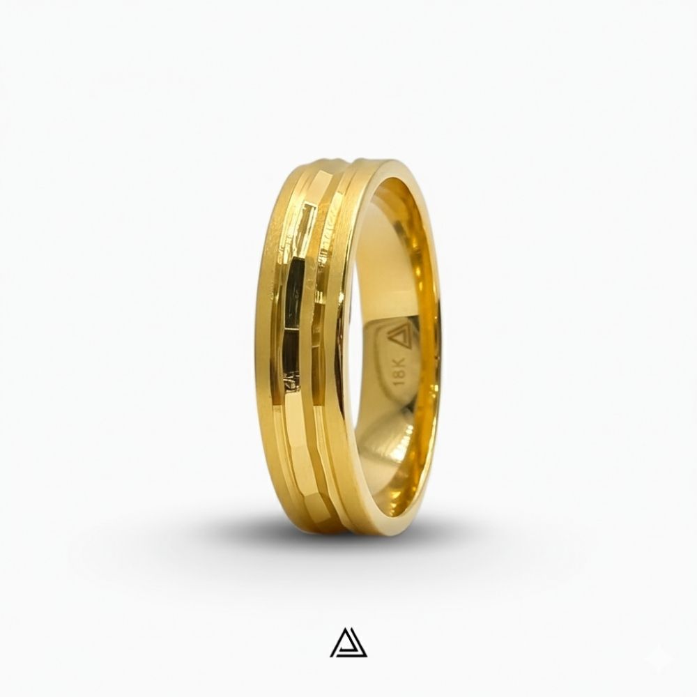 Los aros matrimoniales "Unión Pura" simbolizan el amor eterno y el compromiso inquebrantable entre dos almas. Elaborados en oro amarillo de 18K, representan la solidez, calidez y armonía de una unión destinada a perdurar. Su diseño moderno con facetas pulidas refleja la luz con elegancia, evocando los destellos de los momentos más significativos compartidos en pareja. Cada detalle de este par de argollas de matrimonio ha sido cuidadosamente trabajado para ofrecer belleza, durabilidad y confort en el uso diario.