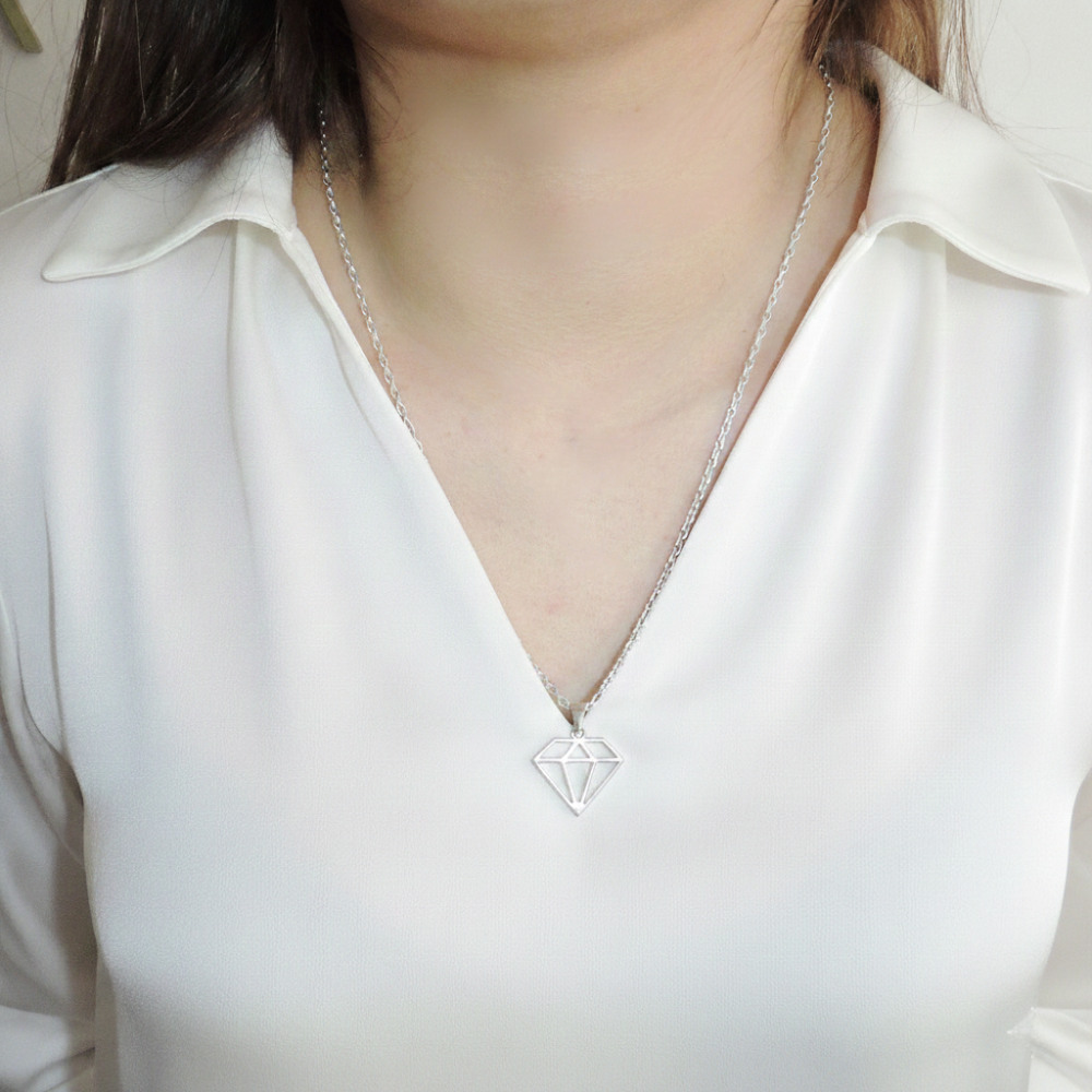 El Collar “Diamantina” simboliza perfección, fuerza inquebrantable y claridad de propósito, con un contorno geométrico calado que evoca un diamante talla brillante y representa resiliencia y valor interior. Su diseño moderno y atemporal proyecta un lujo sutil, convirtiéndolo en un amuleto que inspira confianza y brillo personal, además de ser una gran opción de regalo para celebrar momentos importantes.
